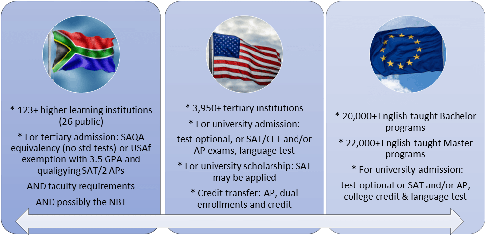 | The same test allows for fair comparisons and can be applied by tertiary institutions for local university exemption, placement, scholarships, and credit transfer purposes. | Low scores on high-stakes tests like the SAT or AP exams can prevent local USAf exemption or university admission. |