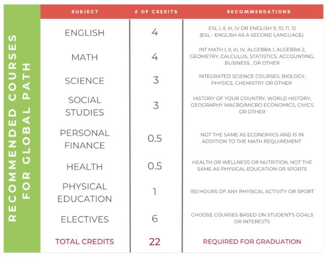To graduate, a total of 22 subject credits are necessary. The quality and content of these courses are crucial, especially if pursuing tertiary education is a goal. Additionally, transfer students are welcome to join our program.